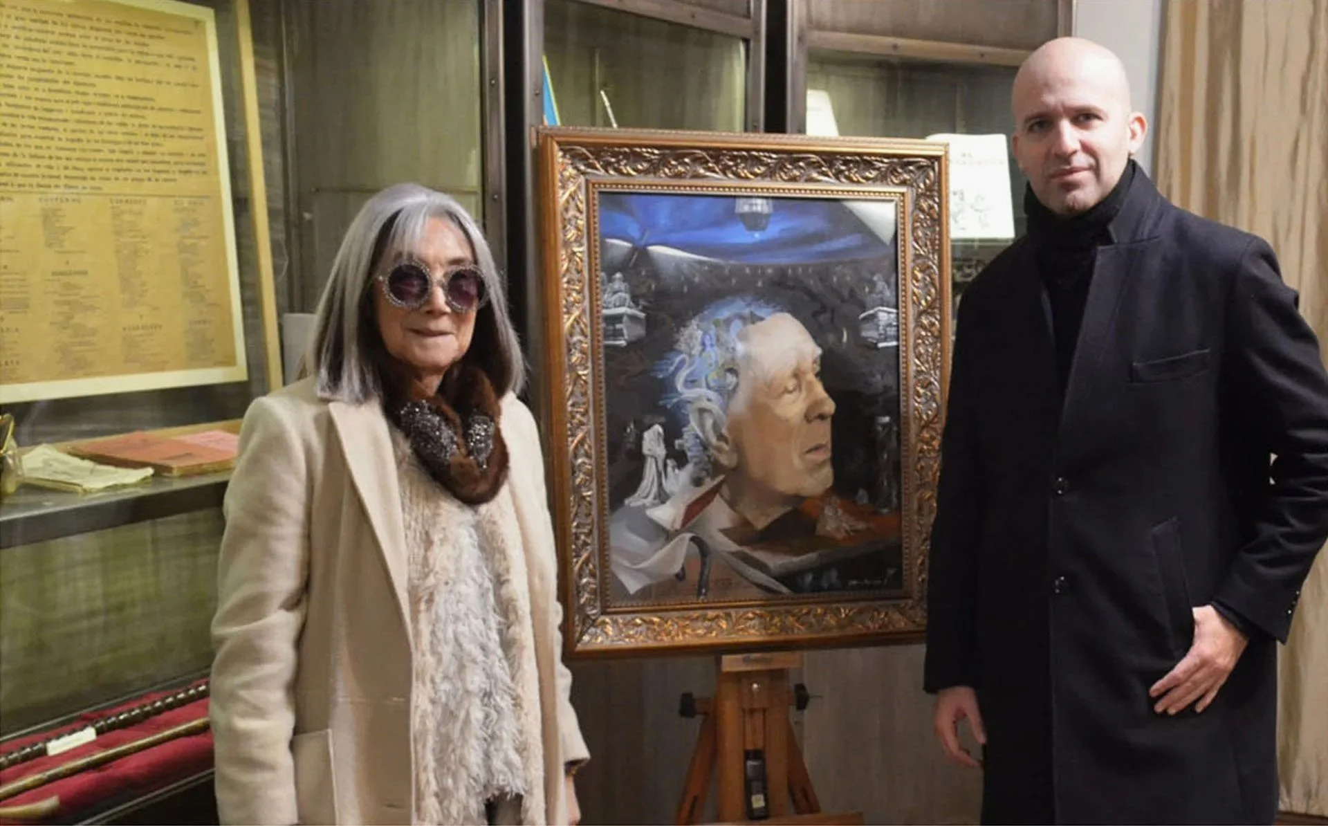 Presentation of art piece with María Kodama. International Foundation Jorge Luis Borges.